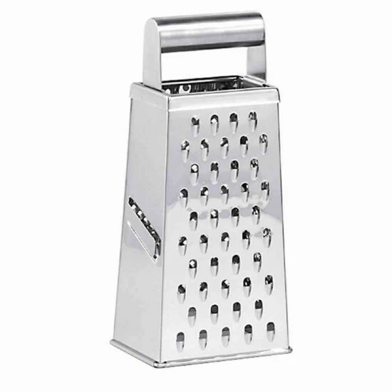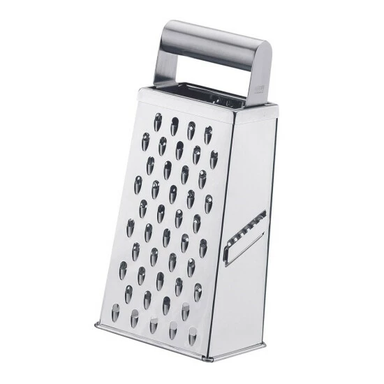 Beidseitig geschliffene Klingen fÌr perfektes Schneiden in beide Richtungen. Handsympathischer Griff. Verwendbar als Fein-, Grob- und Kartoffelreibe, komplett aus Edelstahl, spÌlmaschinengeeignet. L x B x H: 11,0 x 8,5 x 24,0cm