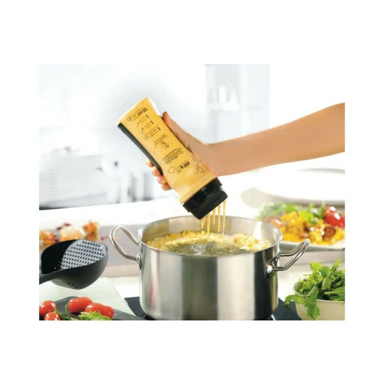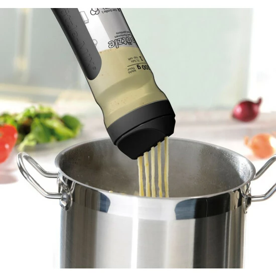 Da kann absolut nichts schiefgehen mit hausgemachten Spätzle, Pfannkuchen oder Crêpes: Der Crêpes- und Spätzle-Mix liefert die Zutaten in aufschichtender Reihenfolge – einfacher geht es nicht. Dann den innovativen „Twister“ in den Crêpes- und Spätzle-Mix geben, mit dem 5-Düsen-Deckel verschließen, den Verschlussdeckel drauf, kurz kräftig schütteln und dann der homogenen Mischung ein bisschen Zeit zum Gehen geben. Danach lässt sich der Teig wie gewohnt verarbeiten. Durch die rutschfesten Santopren-Griffeilagen hat man den Spätzle-Mix immer bestens im Griff. Damit das rundum-sorglos-Paket komplett ist: Nach dem Einsatz wandert der Crêpes- und Spätzle-Mix zur Reinigung in die Spülmaschine – einfacher geht’s nicht!