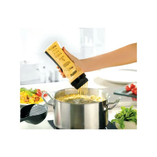 GEFU Spätzle-Mix Rezeptur für Spätzle und Pfannkuchen auf dem Shaker Die aufschichtende Skalierung ermöglicht eine leichte Teigzubereitung Mit Mixereinsatz für eine optimale Teigmischung Kein Verkleben Verschlussdeckel mit Edelstahleinlage Flexibler Polypropylen-Behälter Maße: Durchmesser: 7,9 cm Höhe: 23,9 cm Spülmaschinenfest