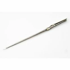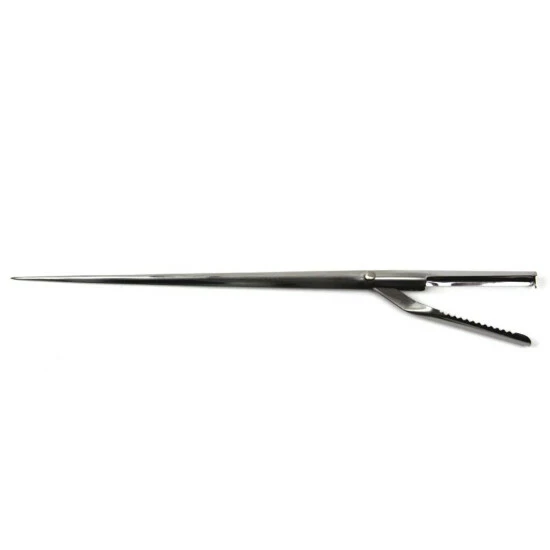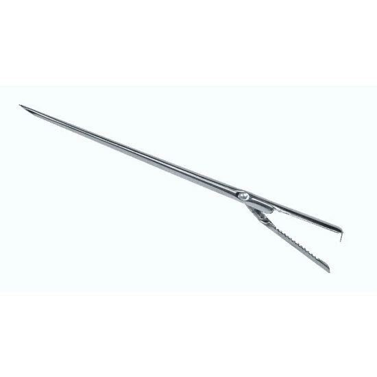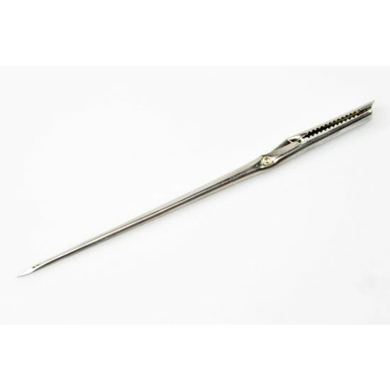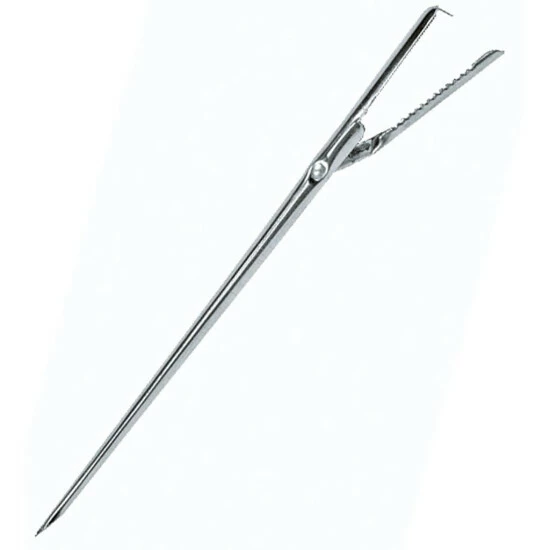 Stabile Spicknadel aus Edelstahl mit gezahnter Klammer.