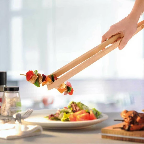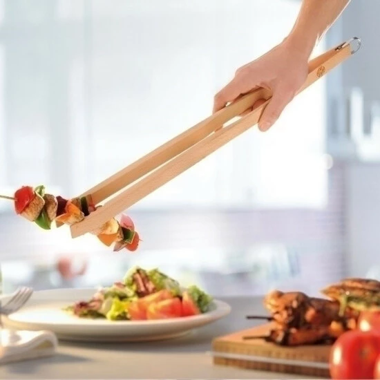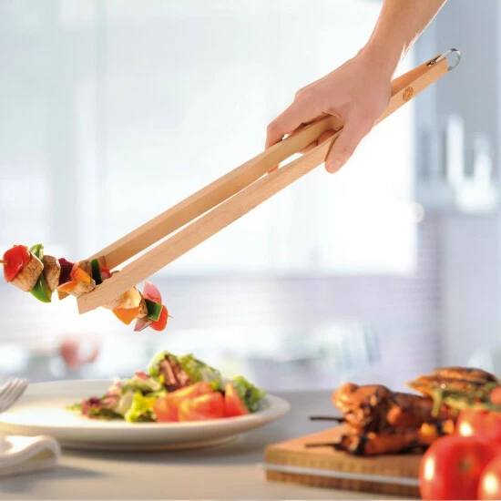 Die praktische und leichte Grillzange Natura aus Buchenholz ist eine extra lange Zange zum Wenden Deines Grillguts.