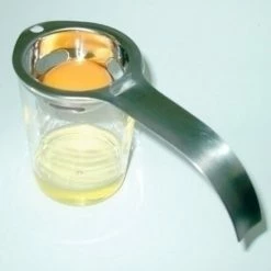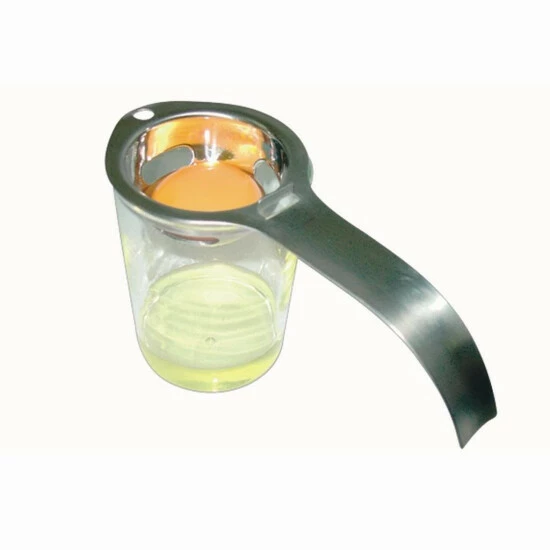 Dieser Eiertrenner ist mit einer Schlagkante ausgestattet, mit der Sie sofort auf Ihr Ei klopfen und das Eigelbweiß abkratzen können.