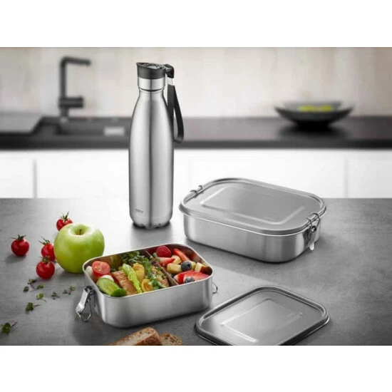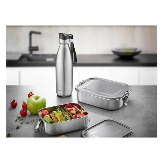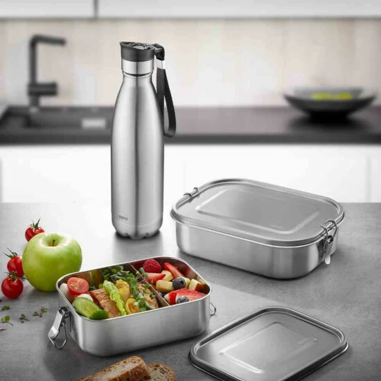 - 100% auslaufsicher und dank praktischem Push-Button-Verschluss mit einer Hand leicht zu öffnen und zu schließen
