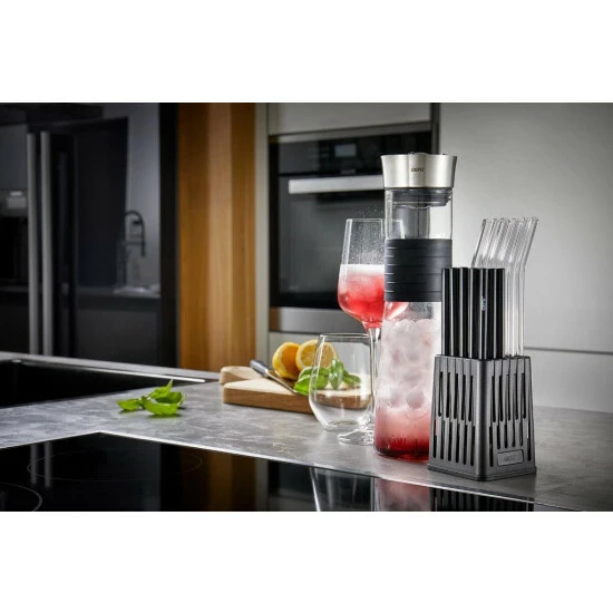Dem wiederkehrenden Genuss von frisch gepressten Säften, Smoothies & Co. steht nichts mehr im Wege: der Sammelkorb bietet sowohl Edelstahl- als auch Glastrinkhalmen sicheren Halt beim Waschgang im Geschirrspüler.
