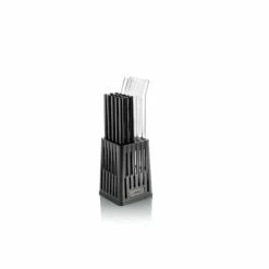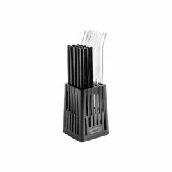 Material: Kunststoff Maße: ca. 7,7 x 7,7 x 10,5 cm Farbe: schwarz Geeignet für 25 wiederverwendbare Trinkhalme (nicht im Lieferumfang enthalten) mit einem Durchmesser bis ca. 0,8 cm Geeignet für den Geschirrspüler Auch geeignet als Box für die Aufbewahrung von Trinkhalmen Einfache Reinigung dank Klippverschluss