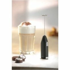 Der batteriebetriebene Milchaufschäumer sorgt mit seiner Soft-Touch-Oberfläche für eine besonders angenehme Handhabung. Der Quirl ist aus Edelstahl und die Drehzahl beträgt ca. 12.000 Umdrehungen pro Minute. Im Lieferumfang sind der Milchaufschäumer und zwei AA Batterien enthalten.