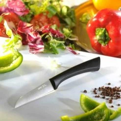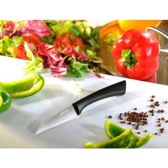 Das Gemüsemesser hat eine kurze, elastische Klinge und ist dadurch besonders handlich und vielseitig zu verwenden. Es eignet sich zum Beispiel wunderbar zum Vorbereiten und Schneiden von Gemüse und Salaten.