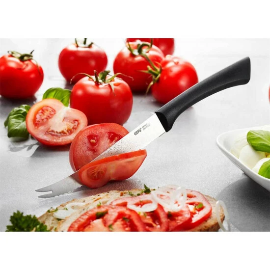 - der Wellenschliff sorgt dafür, dass die Klinge mühelos die Schale durchdringt, ohne das Innere zu zerdrücken