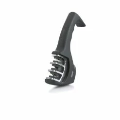 - der dreistufige Messerschärfer bietet einen Diamantschleifstein, der beschädigte Klingen glättet, bevor sie in Stufe 2 mit Wolframstahl ihre V-Form wieder erhalten und geschärft werden. Das Finish übernimmt der Keramikschleifstein, der die Klinge poliert und alle Unebenheiten ausgleicht