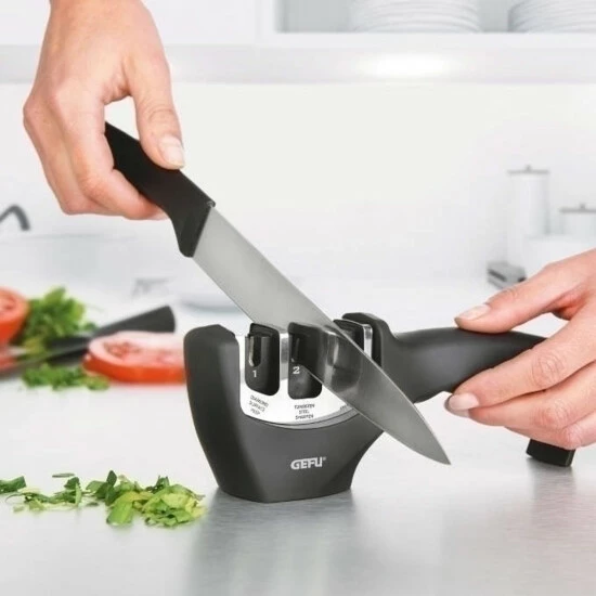 - damit Küchenmesser im Nu wieder bewährt schnittig sind, gibt es den dreistufigen Messerschärfer für das ebenso schnelle wie einfache Nachschärfen