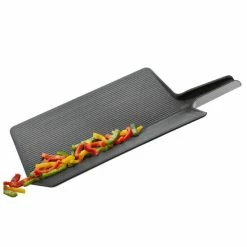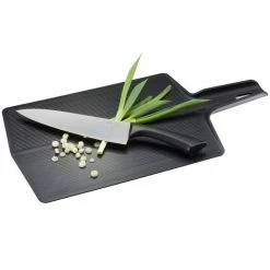 - rutschfeste Stege auf der Unterseite bieten dem faltbaren Schneidebrett sicheren Halt beim Zerkleinern von Zutaten, die anschließend durch das Hochklappen der Schneidfläche ganz bequem in Topf, Pfanne oder Schüssel gegeben werden können