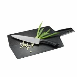 Material: Kunststoff Maße: ca. 47 x 26 x 2 cm Farbe: schwarz Mit praktischer Klappfunktion, damit geschnittene Zutaten ganz einfach und schnell in die Pfanne gegeben werden können Mit klingenschonender Schneidfläche un mit Aufhängeöse Rutschfest