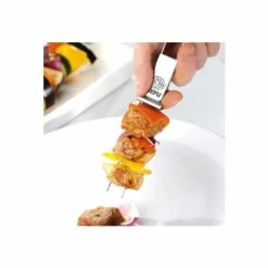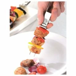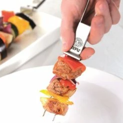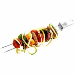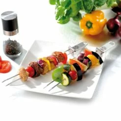 Fleisch, Fisch, Meeresfrüchte, Geflügel und Gemüse: Bei Grillspießen sind der persönlichen Kreativität keine Grenzen gesetzt. Die 32cm langen Edelstahl-Doppelspieße fixieren das Gargut, so dass sich beim Wenden auf dem Grill oder in der Pfanne nichts verdreht. Und mit dem integrierten Abstreifer lassen sich die leckeren Spieß-Zutaten einfach auf die Teller schieben.
