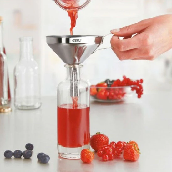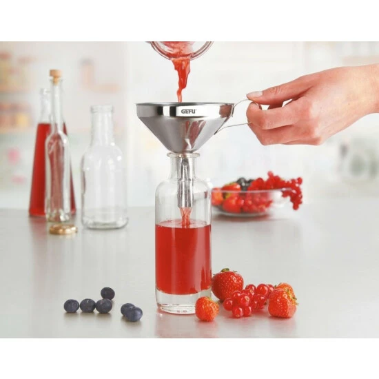 Insbesondere beim Einfüllen selbstgemachter Säfte in Flaschen macht sich der kleine Einfüllrichter nützlich! Kein Tropfen geht verloren – und durch den herausnehmbaren Siebeinsatz gelangen weder Kerne noch Fruchtrückstände in die Flasche. Natürlich zeigt der handliche Trichter ohne Siebeinsatz auch seine Stärke, wenn die Gewürzmühle oder der Salzstreuer befüllt werden sollen.Material: Edelstahl, sonstiger – ideal für Flaschenabfüllung – herausnehmbarer Siebeinsatz – auch zum Befüllen von Salzstreuern / Gewürzmühlen