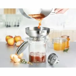 Mit dem Einmachtrichter ist das Abfüllen selbst gemachter Marmelade eine saubere Sache! Und durch den herausnehmbaren Siebeinsatz gelangt der fruchtige Aufstrich kernfrei ins Glas. Einsetzbar bei Behältern mit Durchmessern zwischen 1,5 und 5,5 cm.