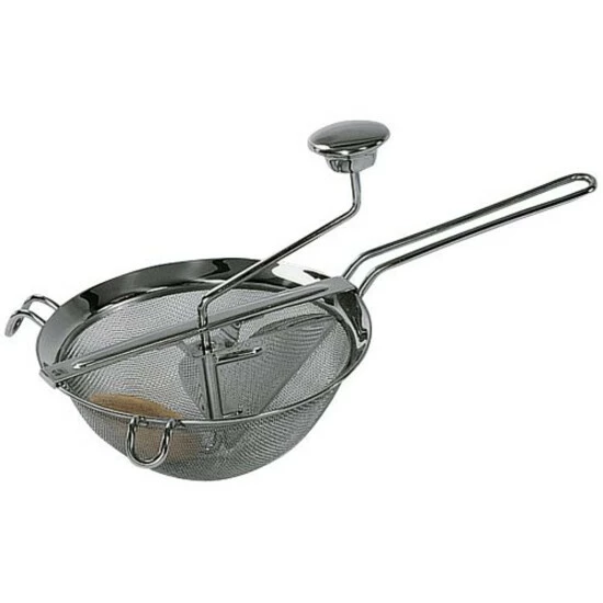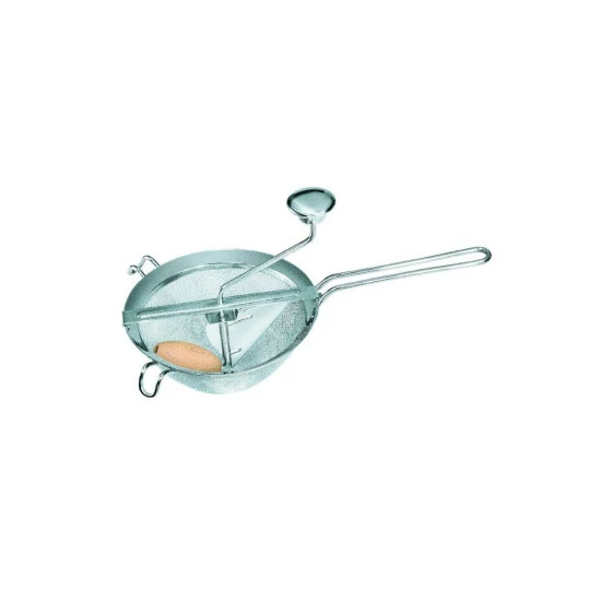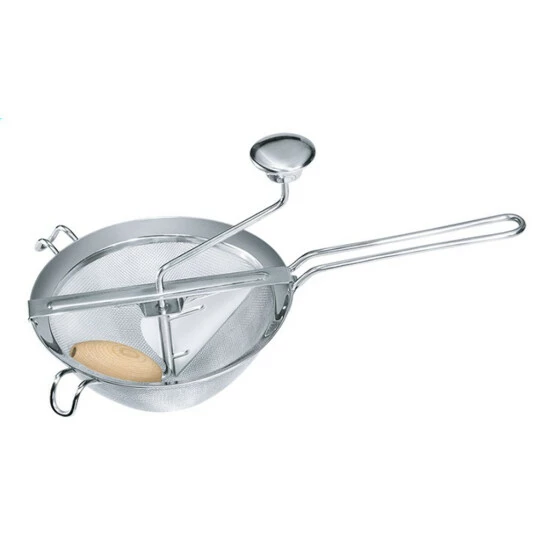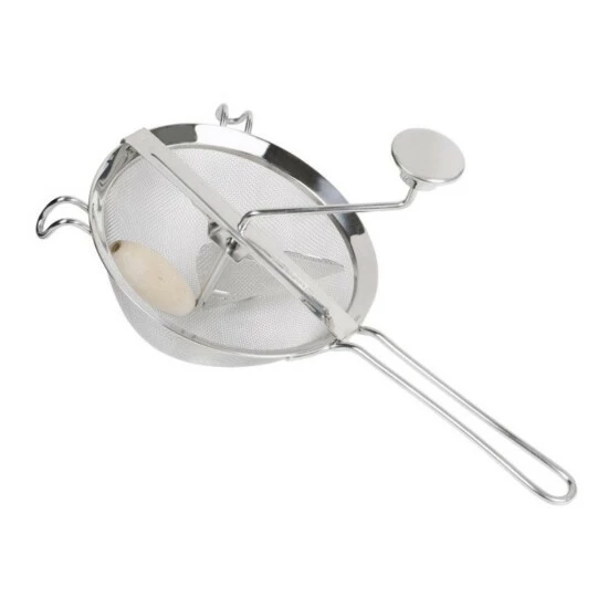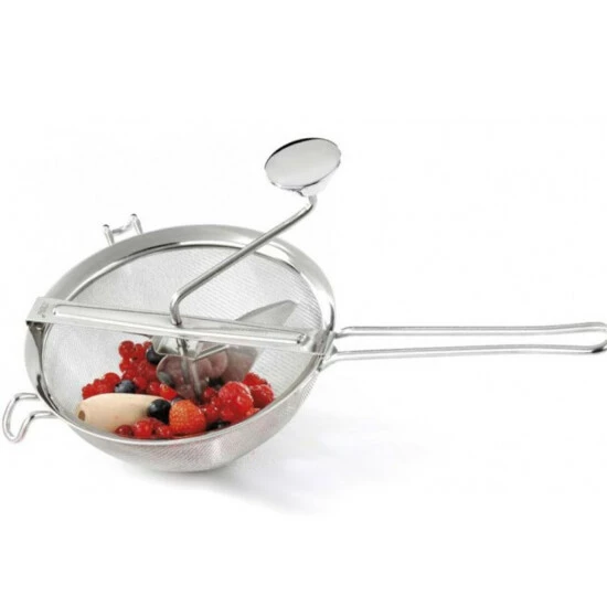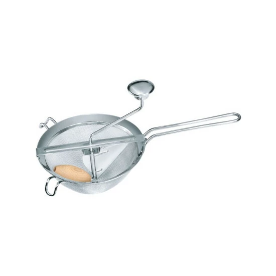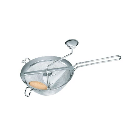 Die Holzkugel und die robusten Flügel des Rührwerks machen jedes Passiergut zum feinsten Püree und nutzen es bis zum letzten Rest sparsam aus.