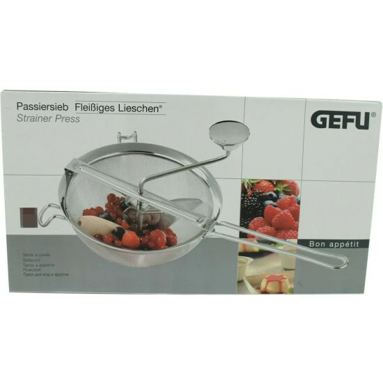 Wir sagen Ade zum zeitfressenden Einmachen per Hand, wie man es aus Omas Zeiten kennt! Denn dank des Passiergerätes von Gefu sparen wir beim Herstellen von cremigen Fruchtspeisen, Marmelade oder Gelee enorm viel Zeit. Durch die handbetriebene Kurbel, dreht sich die Edelstahlklinge direkt über das feine Geflecht der Passiermühle und trennt Kerne und grobes Fruchtfleisch von feinem Mousse oder Saft. Zum Reinigen ist das Rührwerk abnehmbar und auch die Kugel kann abgezogen werden, damit der Rest in der Spülmaschine gereinigt werden kann.