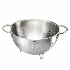 Hochwertiger, optisch sehr ansprechender Seiher aus Edelstahl mit zwei seitlichen Griffen. Die praktische Lochung an Seite und Boden sorgt für ein zügiges Ablaufen der Flüssigkeit.