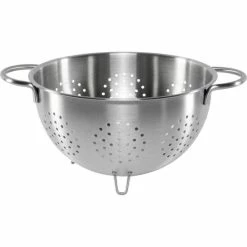Hochwertiger, optisch sehr ansprechender Seiher aus Edelstahl mit zwei seitlichen Griffen. Die praktische Lochung an Seite und Boden sorgt für ein zügiges Ablaufen der Flüssigkeit.