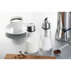 Durch die zeitlos-schlichte, konische Form fügt sich das Milchkännchen in jedes Tischambiente ein. Damit kommen Sahne, Kondens- oder Frischmilch für Kaffee oder Tee aber auch Essig für frische Salate und flüssige Würze für Suppen in einem servierschicken Gefäß auf den Tisch. Das Kännchen ist einfach zu befüllen und mit dem im Deckel integrierten Ausgießer lässt sich der Inhalt einfach dosieren.