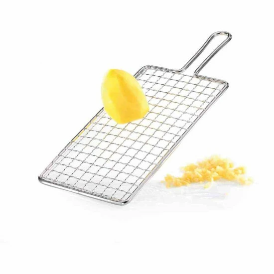 In der Sterneküche oder beim rustikalen Treffen beim Bier: Kartoffelpuffer sind solo oder als Beilage ein Klassiker. Mal in süßer, mal in herzhafter Variante doch entscheidend für Geschmack und Konsistenz ist der Teig. Deshalb wurde die Drahtkartoffelreibe RUSTICO entwickelt, die mit ihren 1mm dünnen Edelstahldrähten zu einem gitterartigen Geflecht verarbeitet rohen Kartoffeln zu Leibe rückt und diese in den idealen Teig für die knusprigen Kartoffelküchlein verwandelt. Natürlich spülmaschinenfest!