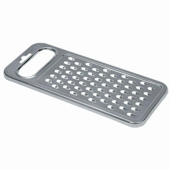 Edelstahl-Reibe aus einem Stück – z.B. für Gemüsesalate unverzichtbar. Material: hochwertiger Edelstahl. Maße: L/B/H 103 x 24,3 x 1 cm