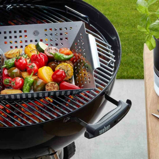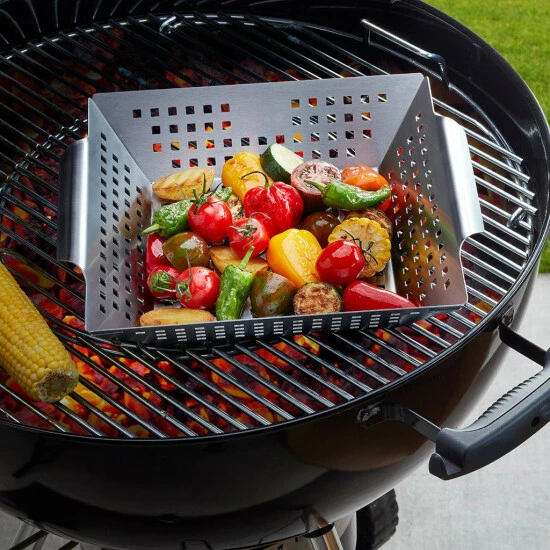 Gemüse, Fisch oder Rosmarinkartoffeln… in der Grillschale gelingt all das perfekt. Die quadratischen Öffnungen in Boden und Seitenwänden sorgen dabei für optimale Hitzezirkulation.