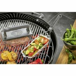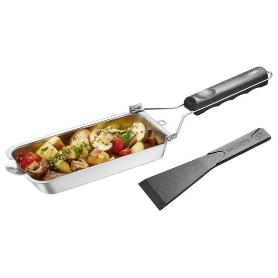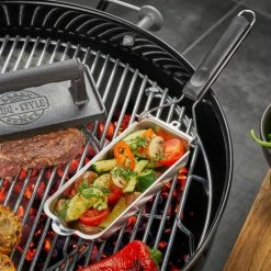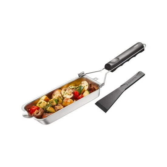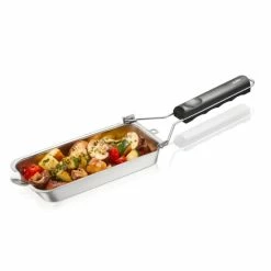 Das praktische Grillpfännchen für das perfekte Gelingen von kleinen Leckerbissen wie zarten Garnelen, knackigem Grillgemüse oder herzhaft mit Käse Überbackenem im geschlossenen Grill. Der Griff wird zum Grillen ganz einfach aus- und zum Servieren wieder eingehakt. Mit Hilfe des dazugehörigen Kunststoffschabers kann das Grillgut leicht aus dem Pfännchen gleiten. Zusammengeklappt passt es in jede Schublade.