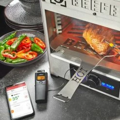 Aber nicht nur für den Grill ist das Thermometer geeignet – selbstverständlich lässt es sich auch für den Backofen, zum Beispiel beim Niedrigtemperaturgaren, einsetzen. Dank des Magneten, kann man das Grill- und Bratenthermometer direkt an der Backofenklappe befestigen.