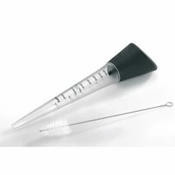 Statt Ihr Fleisch in Öl zu ertränken, können Sie Braten, Steaks und Co. mit der Bratenspitze von Gefu tröpfchenweise mit Marinade oder Bratensaft verfeinern. Die Spritze funktioniert nach dem Pipetten-Prinzip. Das heißt, die Flüssigkeiten werden über die schmale Spitze und dem flexiblen schwarzen Silikongriff aufgesogen und auch auf diese Weise auf dem Fleisch verteilt. Die Bratenspritze ist aus transparentem Kunststoff gefertigt und mit einer Skalierung von 10 – 40 ml bzw. 1/4 – 1 1/2 oz versehen. Sie haben die genaue Menge somit direkt im Blick und können Marinade oder Bratensaft exakt dosieren. Nach Gebrauch lässt sich die Bratenspritze einfach in der Spülmaschine oder mit der zusätzlichen Reinigungsbürste reinigen.