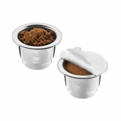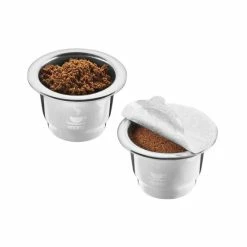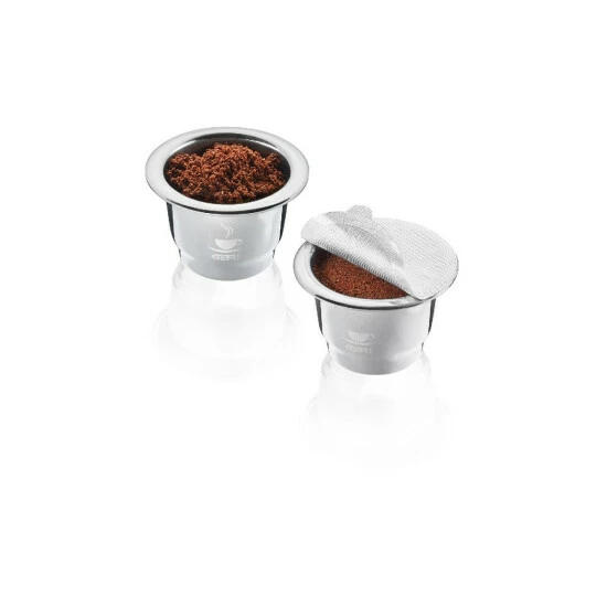 Nachhaltige Kaffeekapseln CONSCIO von Gefu Die nachhaltige Alternative zu diversen Kaffeekapseln, die nach einer Benutzung in den Müll wandern: die Kaffeekapseln CONSCIO von Gefu. Das zweiteilige Set ist die perfekte Ergänzung für Dein CONSCIO Kaffeekapsel-Set. Ein weiterer Vorteil – Du kannst die Füllmenge an Espressopulver und damit die Intensität Deines Espressos oder Café Crèmas selbst bestimmen. Nach dem Befüllen wird die Kapsel mit einem selbstklebenden Aroma-Sticker verschlossen. Die Kaffeekapseln eignen sich für alle gängigen, original NESPRESSO®-Kapselmaschinen. Dank des hochwertigen Edelstahls dürfen die Kapseln in der Spülmaschine gereinigt werden und sind direkt wieder einsatzbereit.
