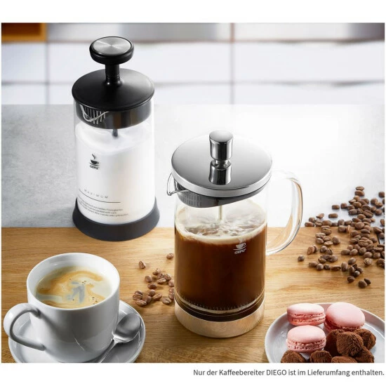 Aromatisch und Umweltschonend – Damit könnte man den Kaffeebereiter Diego beschreiben. Mit dem umweltfreundlichen French Press System bleibt der Kaffeesatz in der Kanne und der Kaffee entwickelt ein ganz besonderes Aroma. Auch Teeliebhaber kommen auf ihre Kosten, denn mit dem French Press System kann man ebenso Tee aufbrühen. Zum genießen!