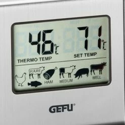GEFU digitales Bratenthermometer Messbereich: 0 Grad bis +250 Grad Mit Alarmfunktion Timer bis 99 Minuten 1m langes, hitzebeständiges Kabel (Edelstahlsonde) Mit Befestigungsmagnet