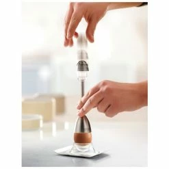 Der Eierköpfer mit integriertem Salzstreuer funktioniert kinderleicht – und liefert den Spaßfaktor zum Frühstücksei! Einfach den Eierköpfer auf das hart- oder weichgekochte Ei setzen, die Kugel nach oben ziehen und zurückschnellen lassen. So bekommt das Ei rundherum eine Bruchstelle, der Eierköpfer wird seitlich weggekippt – dann ist alles startklar für die leckere Frühstücksei-Löffelei! Der Eierköpfer aus Edelstahl und Kunststoff bietet natürlich noch einen Mehrwert – mit dem integrierten Salzstreuer. Dieser kann wahlweise kleine oder größere Mengen Salz liefern, das ist einstellbar. Und verschließbar ist der Streuer auch – echt praktisch!