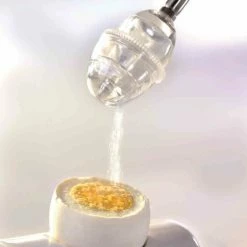 Dieser Eierköpfer eignet sich für harte wie weiche Eier und verfügt über einen integrierten Salzstreuer. Die Salzmenge ist einstellbar.