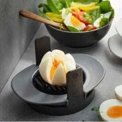 Schluss mit dem Ei(n)erlei: mit EGGI lassen sich hart gekochte Eier wahlweise halbieren, sechsteln und natürlich auch in leckere Scheiben schneiden.