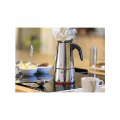 Genießen Sie den Geschmack von Kaffee wie aus dem besten Café! Emilio Kaffeemaschine ist eine einfache Möglichkeit, schnell starken und schmackhaften Kaffee zu kochen, vergleichbar mit Kaffee aus der Kaffeemaschine. Ein echter Leckerbissen für Liebhaber von schwarzem Getränk. Die stabile Kaffeemaschine ist aus hochwertigem Edelstahl gefertigt und der Griff des Deckels und Griffs besteht aus hochtemperaturschwarzem Kunststoff. Der Wasserdruck, der in der Schale produziert wird, ermöglicht es, den Kaffee zu gebrauen, so dass das ganze Aroma der Körner in die Infusion gelangt und einen tiefen, ausdrucksstarken Geschmack schafft. Die Kapazität des Gerichts reicht aus, um zwei Tassen Getränk zuzubereiten. Bequem zu bedienen dank des geneigten Deckels und der konturierten Wände, um ein Verschütten zu verhindern. spülmaschinengeeignet Emilio Kaffeemaschine ist für Gas-, Elektro- und Induktionskochfelder geeignet.