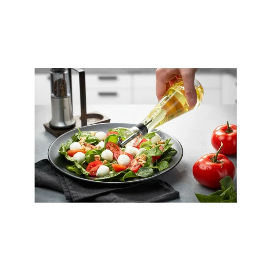 Der exklusive Spender aus hochwertigem Kristallglas ist mit einem tropfsicheren Edelstahlausgießer mit Verschlusskappe ausgestattet. Dosieren Sie perfekt Essig oder Öl, Tropfen für Tropfen in formvollendetem Design.