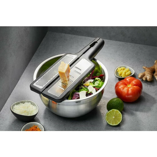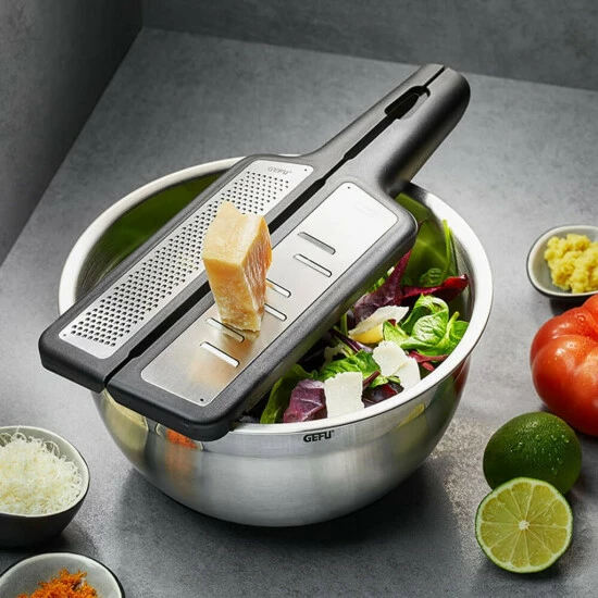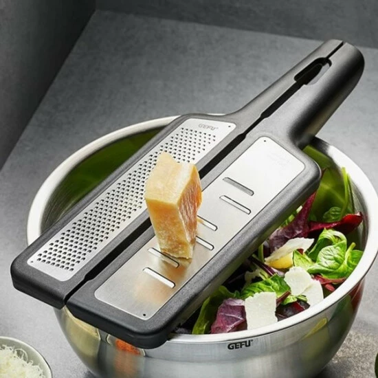 Die Marke GEFU überrascht ihre Kunden seit Jahren mit der Innovation des Designs von Küchenzubehör, das sie durchführt. RAFINO Falzreibe ist keine Ausnahme! Dank dessen werden Sie viele Lebensmittel reiben, aber im Gegensatz zu traditionell gebauten Reiben nimmt sie nicht viel Platz in der Küche ein.