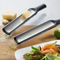 Ob Flocken oder fein gerieben: die zwei Reibflächen der Fein-und Grobreibe liefern durch die extrem scharfen LASER CUT Klingen perfekte Ergebnisse von Parmesan, Ingwer, Schokolade, Zitronenschale, Möhren und anderen festen Lebensmitteln.