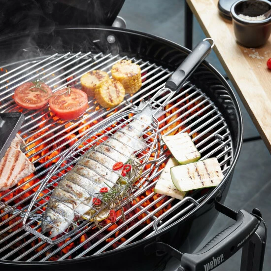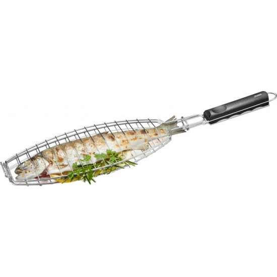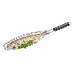 Fisch grillen wie ein Profi. Mit dem Fischbräter BBQ steht dem puren Genuss eines ganzen Fisches nichts mehr im Weg. Der klappbare Fischbräter lässt sich besonders leicht befüllen und mühelos wenden. Das Resultat: der Fisch brennt nicht an und wird gleichmäßig gar.