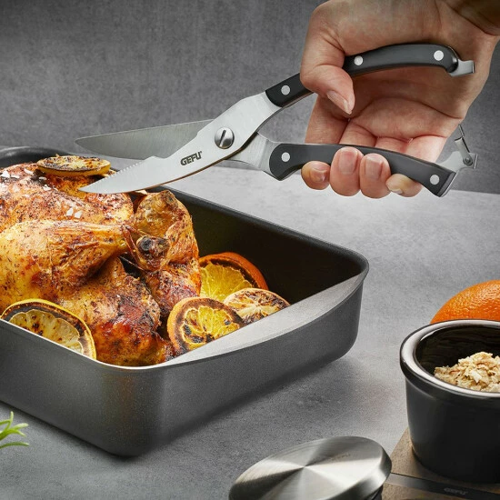 Die Profi-Geflügelschere eignet sich besonders zum Einsatz in der Küche, am Grill im Garten oder auf dem Camping.