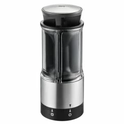Wenn knackige Gemüsestifte, ein gesunder Obstsalat oder herzhafte Kartoffelwedges auf dem Speiseplan stehen, schlägt die Stunde für den Gemüse- und Obstteiler. Je nach Gusto können die Lebensmittel in Viertel oder Achtel geschnitten werden. Einfach die gewünschte Größeneinstellung vornehmen, Schneidgut in die Öffnung geben und mit dem Stößel durch die Schneidröhre drücken. Bei schmalem Obst- und Gemüse sorgt der Zentriereinsatz für einen perfekten Schnitt und um längliches Gemüse optimal zu verarbeiten, gibt die Schnittmarkierung am Stößel eine super Hilfestellung.Material: SAN ABS Klingenst 420J2, jap PP – verstellbarer Messereinsatz aus japanischem Klingenstahl, wahlweise für Viertel- oder Achtel-Stücke – Zentriereinsatz für schmales Obst oder Gemüse, wie Erdbeeren, Trauben oder Kirschtomaten – einfache Anwendung dank praktischem Stößel – transparente, ergonomisch geformte Schneidröhre – Schnittmarkierung für längeres Gemüse, wie Gurken oder Möhren