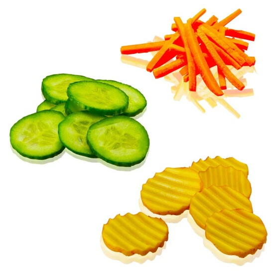zum Schneiden von glatten oder gewellten Schneiden sowie Juliennstreifen und Gemüsestiften