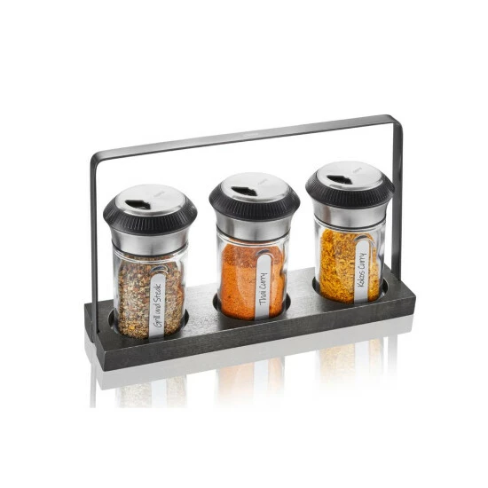 Gewürz- und Kräuterstreuer Set X-PLOSION – Edelstahl, Glas – edle Holzmenage – 3 Streuer – H: 14,2cm