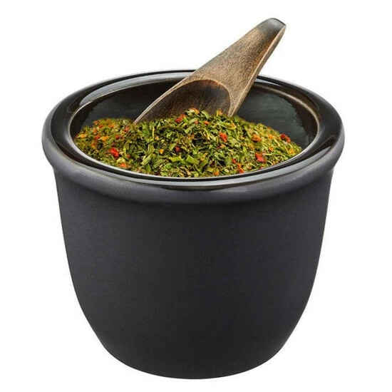 Der X-PLOSION® Gewürzbehälter ist ein Produkt der renommierten deutschen Marke GEFU. Der Behälter besteht aus Keramik und der Deckel besteht aus Edelstahl. Das große Fassungsvermögen von 150 ml ermöglicht es Ihnen, einen größeren Bestand Ihres Lieblingsgewürzes wie aromatisches Curry oder getrocknete provenzalische Kräuter aufzubewahren. Durch den engen Verschluss können Sie den Geruch und Geschmack von Gewürzen länger erhalten. Die schwarze matte Farbe des Behälters in Kombination mit einem dunkelgrauen Metalldeckel schafft ein modernes Design, ideal für Loft-, Industrie- oder eklektische Innenräume.