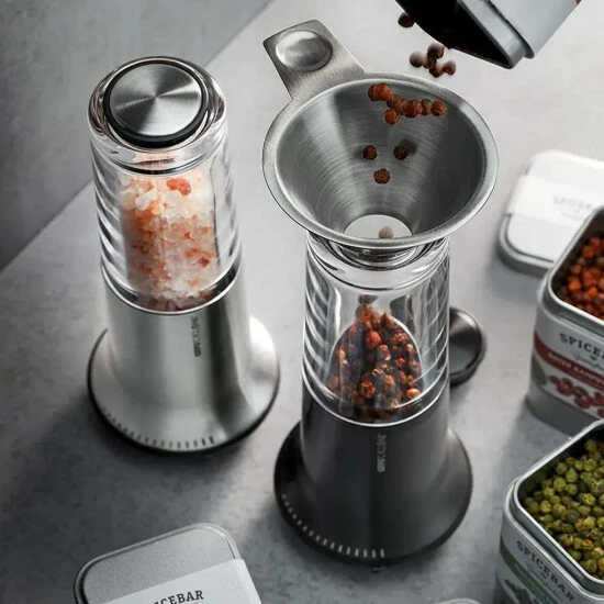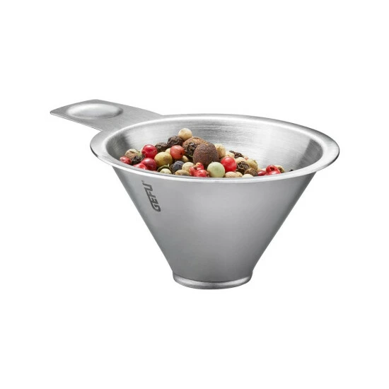 Einfach, sauber, vielseitig verwendbar: der raffinierte Minitrichter CONDIO eignet sich perfekt zum Nachfüllen von sowohl Salz- und Pfeffermühlen und anderen Gewürzmühlen, als auch von Gewürzdosen oder -gläsern.