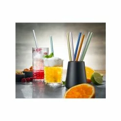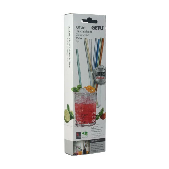 Glastrinkhalm FUTURE im praktischen Set Die Trinkhalme von GEFU sind aus qualitativ hochwertigem Borosilikatglas gefertigt und damit die geschmacksneutrale, wiederverwendbare Alternative zu Kunstoff-Strohhalmen. Jeder Strohhalm hat dabei einen Durchmesser von 0,8 cm und eine Länge von 23 cm und ist nicht nur geschmacksneutral, sondern auch hitzebeständig. Zur einfachen Reinigung können die Strohhalme in der Spülmaschine gereinigt werden. Mit der beiliegenden Reinigungsbürste lassen sich auch schwer zu lösende Rückstände aus dem Halminneren entfernen. Im Set enthalten sind 8 Strohhalme.