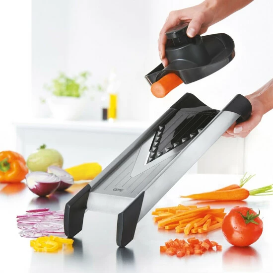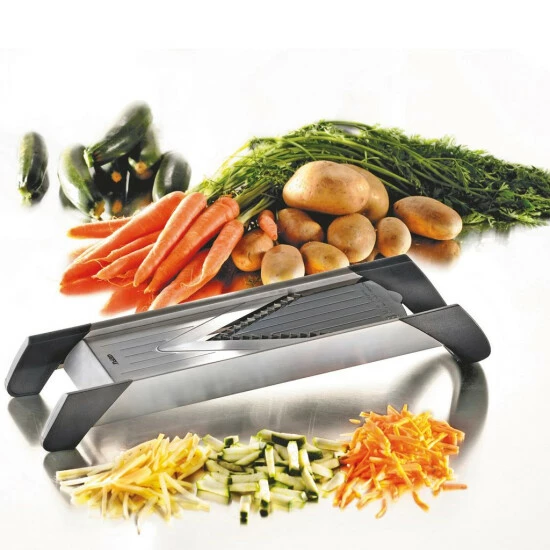 Selbstgemachte Pommes für die hungrige Großfamilie oder zarte Möhrenstifte als Topping und Tellerdeko. Der Hobel wird Dir viele Arbeiten sehr erleichtern.
