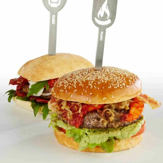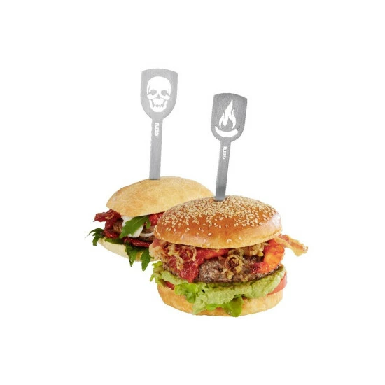 Gefu 2 er Set Hamburger-Spieße Torro mit Totenkopf und Flammme